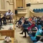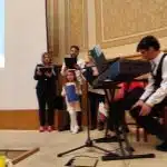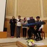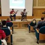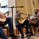Andrei Badea, Dragoș Rădulescu și Cristian Lagu au prezentat noile acorduri de chitară învățate, însoțiți de profesorul lor, George Popescu.